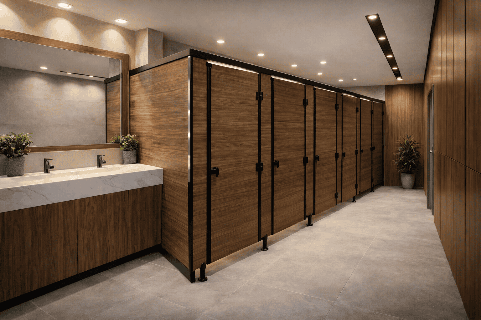 טרסטאר מתמחה בתכנון וייצור של תאי שירותים לעסקים, המסייעים לשדרג את חוויית הלקוח ולשמור על תדמית מותג גבוהה. אנו מאמינים שחדר שירותים נקי ומעוצב מעיד על איכות העסק כולו. התאים שלנו מיוצרים מחומר HPL (טרספה) עמיד, המאפשר לכם לבחור ממגוון רחב של צבעים וגימורים ליצירת מראה נקי, מודרני ויוקרתי. התוצאה היא פתרון חכם המשלב תחזוקה מינימלית, היגיינה מקסימלית ועמידות לשנים, ומבטיח שחדרי השירותים בעסק שלכם תמיד ייראו במיטבם וישאירו רושם חיובי.
