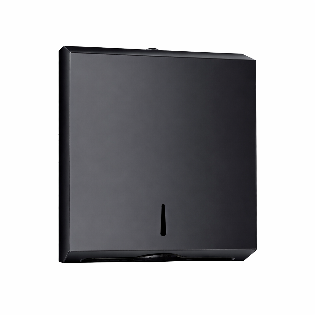 מתקן עבור מגבות נייר המקופלות בשיטת הצץ-רץ המתקן עשוי נירוסטה ובעל אשנב הצצה הנותן אפשרות להבחין בצורך בהוספת נייר למתקן. במתקן קיים גבול תחתון ייחודי עבור שליפת מגבות בודדות לצורך שימוש מבוקר.